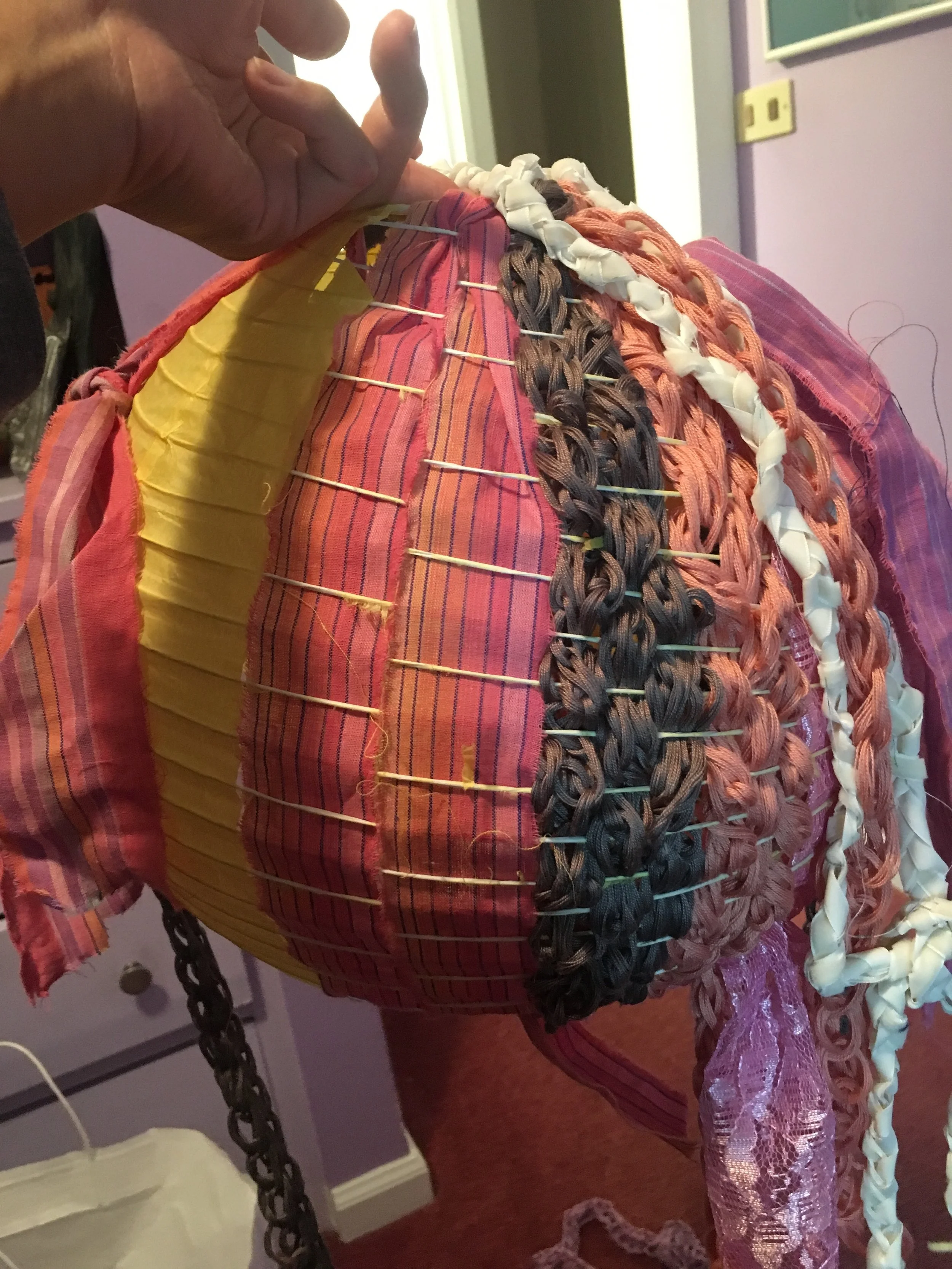 Thinking back on the semester makes me reminisce about working with fabric, drawing, painting, and paper mâché. I really enjoyed working with fabric because it was one of the first materials that we explored in class. I also had not worked with fabric much in my own artwork, and I was able to prove to myself that I could work with this material. What I also enjoyed about this material was that I was able to work with a group and compare the way that we encountered the material differently. The next medium that I really enjoyed working with were drawing materials. As an artist, my training background is in drawing and painting. Working in drawing gave me time to work with materials that I love returning to, and learning how to utilize them in my future classroom differently than I was taught. Besides drawing, my artistic background has been heavily influenced by painting materials. I fell in love with painting when I encountered oil paints at a summer program at the University of the Arts in Philadelphia. Working with painting materials in class gave me a fun opportunity to revisit why I love painting. I also learned a new way that students can approach painting for the first time, without making them feel insecure or nervous about it. Lastly, I really liked working with paper mâché because I was able to explore a material that I have not encountered since elementary school. I also liked working with a partner with a different artistic and education background from me. My partner liked working with different materials and themes that I did in her art. She also is a preschool teacher, which is much different than my vocational aspirations to be a high school art teacher.